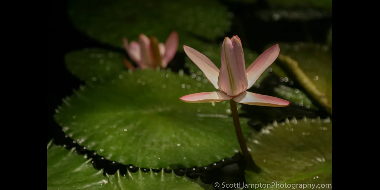 A pink water lily partially opened. This was shot at San Francisco Botanical Gardens located in Golden Gate Park. San Francisco Botanical Garden showcases more than 8,000 different kinds of plants from around the world.