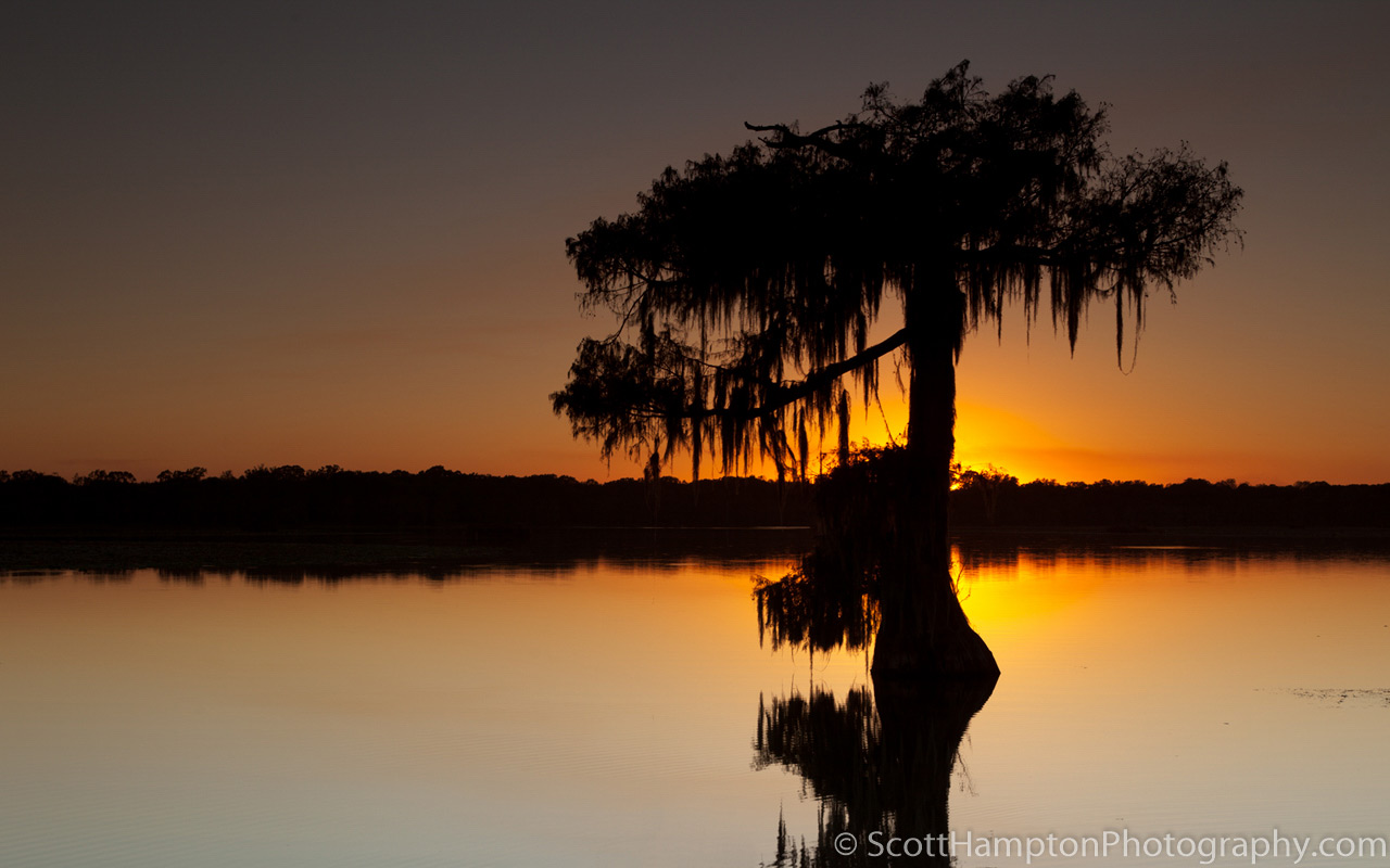 Atchafalaya Basin is known as the "heart of the Louisiana Bayou." Saint Martin Lake is rather a small lake but is very scenic. This tree is known as a Bald Cypress. Adding to the beauty is the Spanish Moss hanging from the branches.