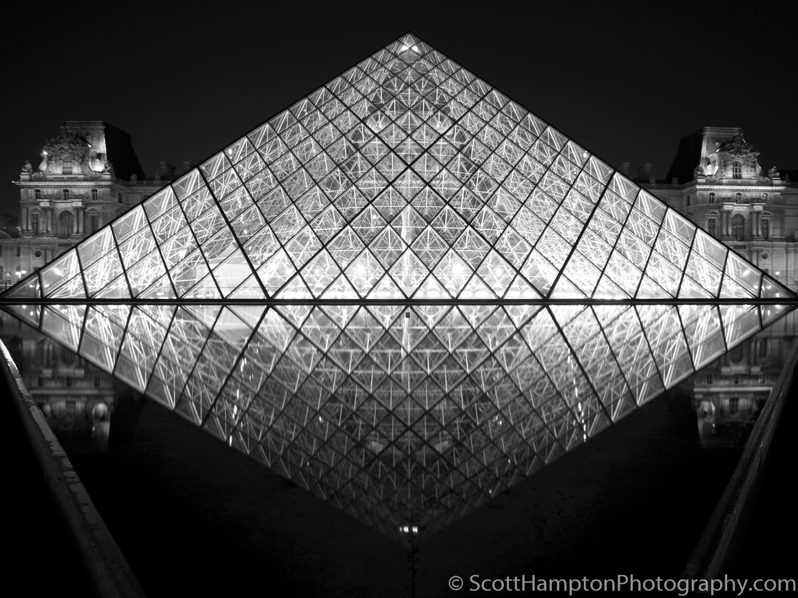 I remember the first time I visited the Louvre I resisted photographing the glass pyramids that were built in the courtyard of the Musée du Louvre (1984.) It seemed like sacrilege! Here is such a classic design and then they install a modern-looking structure right in the center of the courtyard. I use to think it was completely wrong. Well over the years I have decidedly changed my mind. Without question, this modern-looking glass pyramid enhances the Louvre‘s courtyard, especially in the evening. I also love the way the reflecting pools enhance the entire area. Guess that would be the purpose of a reflecting pool :-)